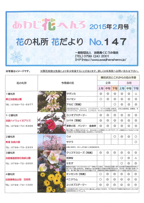 あわじ花へんろ2015年3月号 花の札所花だよりNo.148が公開されましたのでご紹介します。